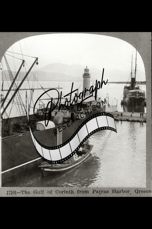 The Gulf of Corinth from Patras Harbor,Greece,Ships,Lighthouse,Boat,July 1910