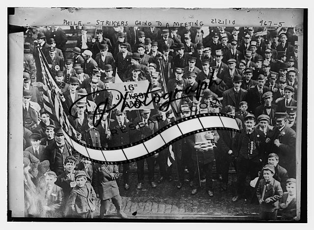 Crowd,strikers going to a meeting,Philadelphia,Pennslyvania,PA,1910,Jackson Bar