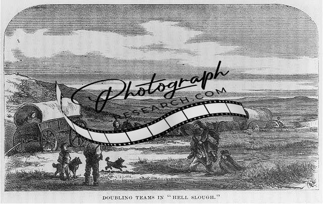 Old way across the plains,Wagon train crossing river,horses?,Westward Movement