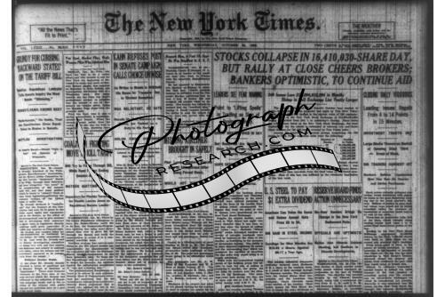 (Bad Quality)Photo of New York Times headline,October 30,1929,Stock Market Crash