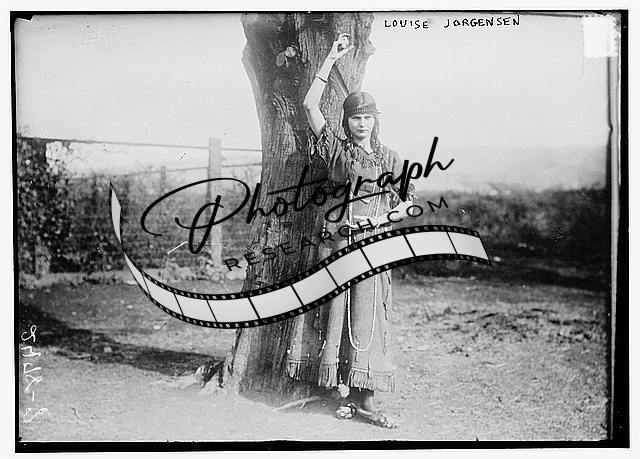 Louise Jorgensen in Indian dress,posed by tree,woman,1910-1915,Bain News Service
