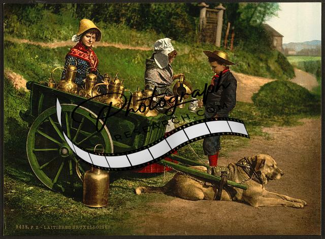 Milksellers, Brussels, Belgium,c1895,Dog pulled Wagon