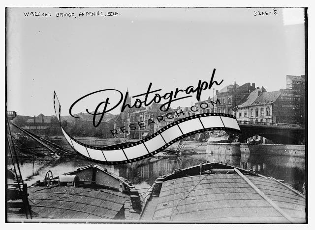 Wrecked bridge,Andenne,Belgium,damage,buildings,Bain News Service