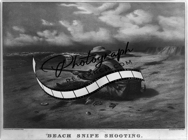 Beach Snipe Shooting,1869,Man,Rifle,Ocean,Waves,Currier & Ives Photo