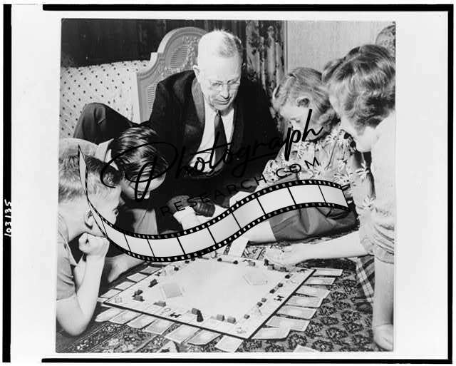 Governor Earl Warren,children,pleasant evening,home,board games,Monopoly,CA,1940