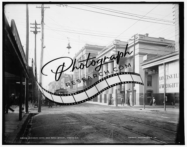 Windsor Hotel,railroads,tracks,buildings,Royal Street,Mobile,Alabama,AL,c1900