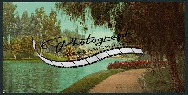 Hollenbeck Park,lake,bridge,trees,Los Angeles,CA,c1901