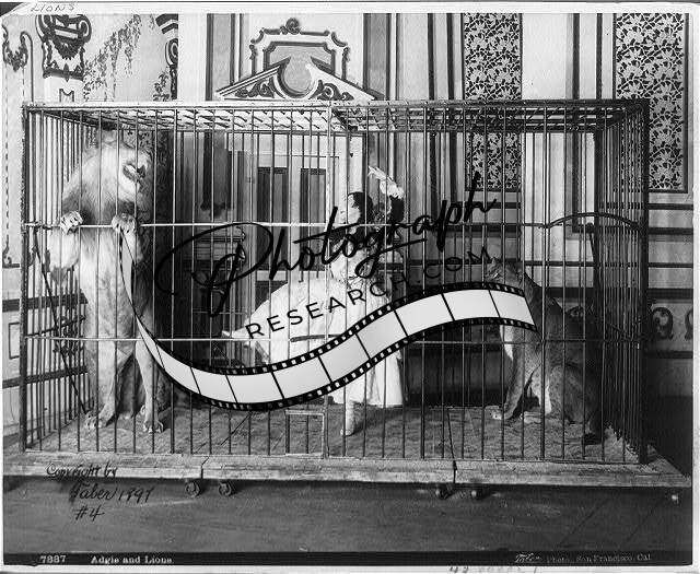 Adgie,her Trained Lions,Woman dancing in cage,c1897