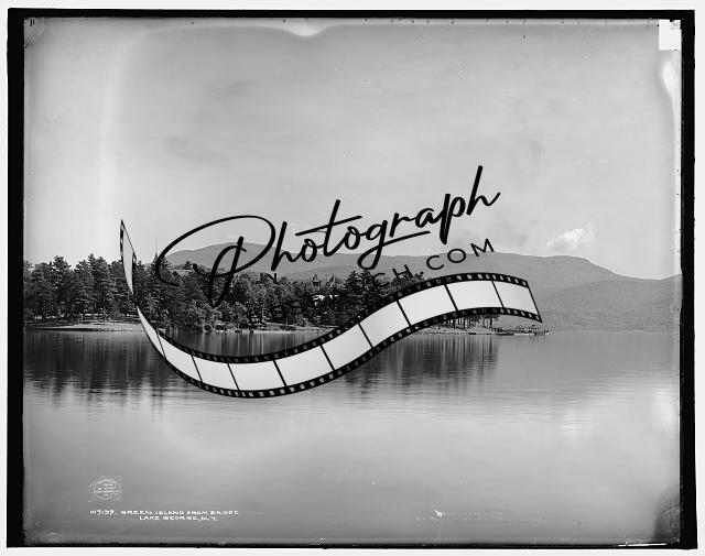 Green Island,bridge,water,Lake George,Adirondack Mountains,New York,NY,c1904