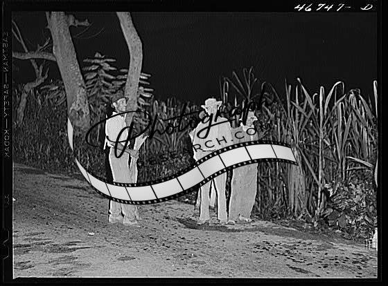 Title: Bayamon, Puerto Rico (vicinity). Men waiting at six o'clock in the morning between Bayamon and Caguas for truck to take them to work in the sugar cane fields