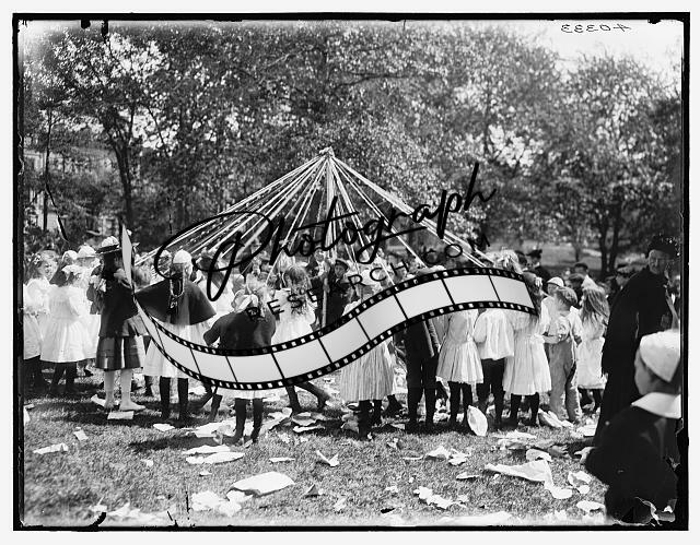 May pole dance,children,crowds,Central Park,New York,Detroit Publishing Co,1905