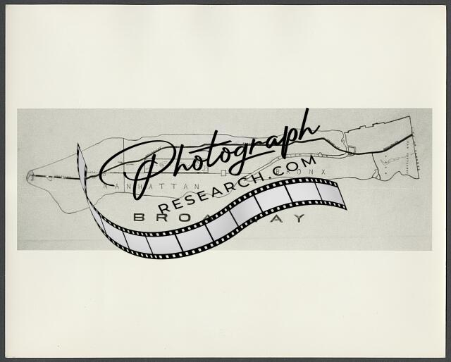 [[Photograph of a simple map showing Broadway as it passes through Manhattan and