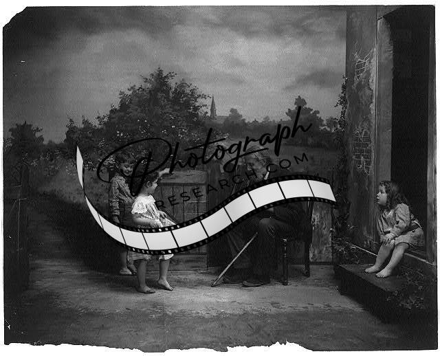 Man playing small accordian,3 children,1 of them dancing,Fitz Guerin,Courtship
