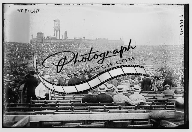 Fight,seats,spectators,crowds,rings,water towers,buildings,Bain News Service