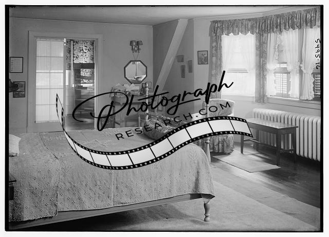 Bedroom,interiors,bedding,windows,curtains,radiator,desks,Bain News Service