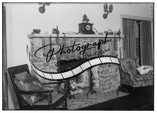 Fireplace,matels,stonework,chairs,clocks,doorways,pillows,Bain News Service