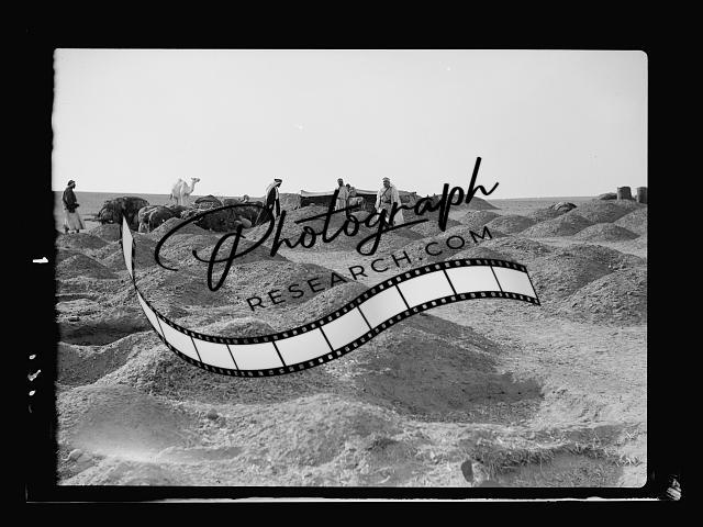 Title: Beersheba and surroundings. (Beer Saba). Wadi Shria. Watering camels in an 'Aba'. Bedouin outer garment
