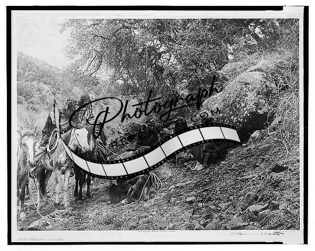 Storytelling,Edward S. Curtis,c1906,Apache Indians,horseback,storytelling