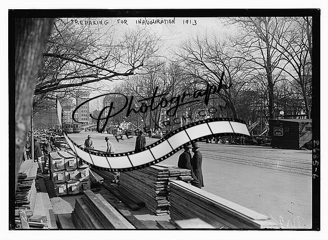 Preparing for Inauguration,1910-1915,wood,people,trolley cars,street