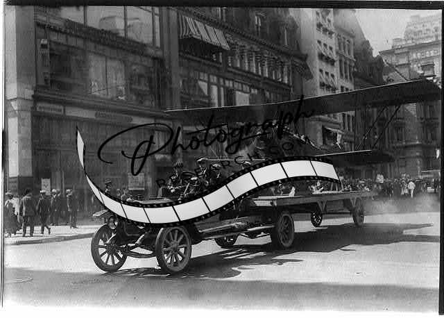 Airplane with engine running on White truck,Preparedness parade,NYC or Chicago