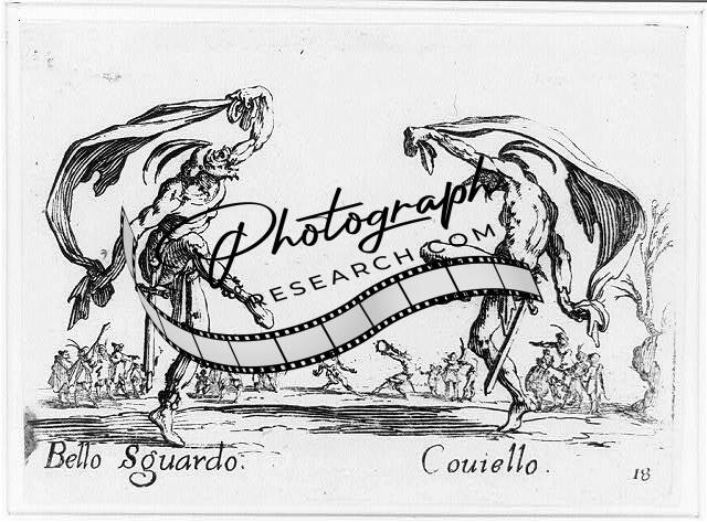 Bello Sguardo,Couiello--Balli di Sfessani,1621,Jacques Callot,Two men dancing