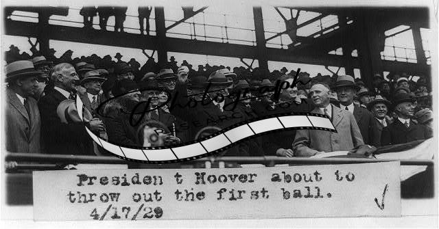 [[President Hoover about to throw out the first ball, Griffith Stadium, April 17,