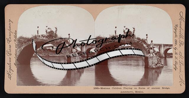 Mexican children playing on ruins of ancient bridge, Acambarro, Mexico