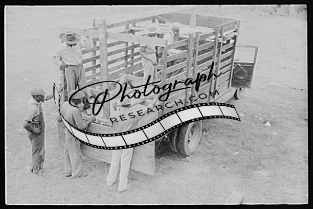 Title: Migrants with their luggage preparing to leave Belcross, North Carolina for another job at Onley, Virginia