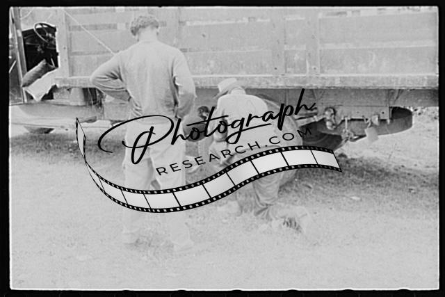 Title: Migrants getting truck ready to leave Belcross, North Carolina for Onley, Virginia