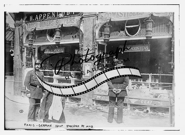 Paris,France -- German Shop smashed by mob,policemen,store front,broken glass