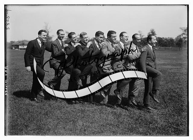 Ray Miller,men,lines,dancing,outdoors,leg kicks,fields,suits,Bain News Service