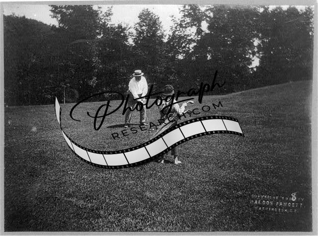President William Howard Taft putting on the golf course,c1908,caddy,caddie