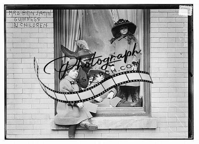 Mrs. B. Guinness & children,seated in window,dog,1910-1915,Bain News,coats
