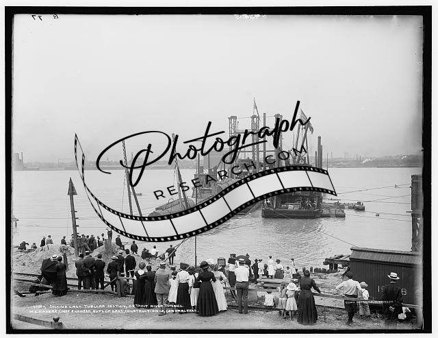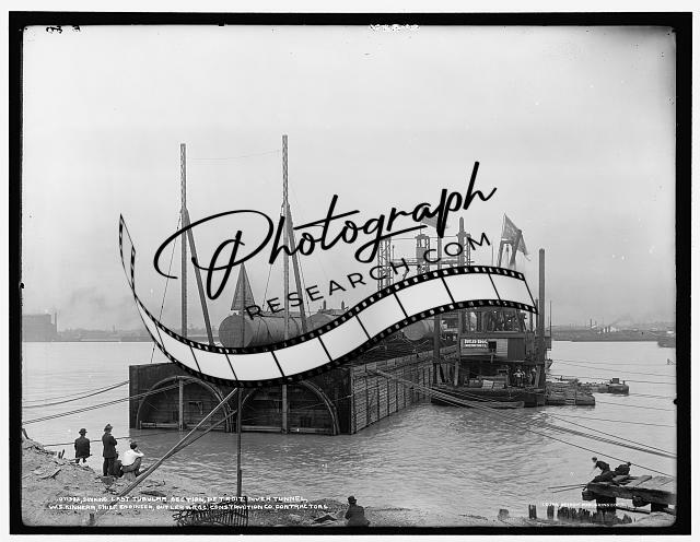 Sinking last tubular section,Detroit River tunnel,railroads,Michigan,MI,c1900