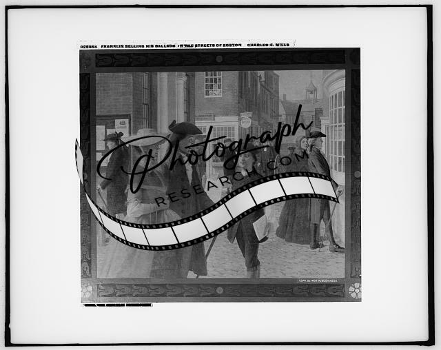 Benjamin Franklin selling ballads,streets,peddlers,Boston,Charles E Mills,c1900