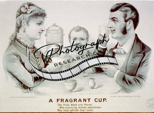 A fragrant cup,c1884,Currier & Ives,Photo,man,woman,drinking tea,child,family?