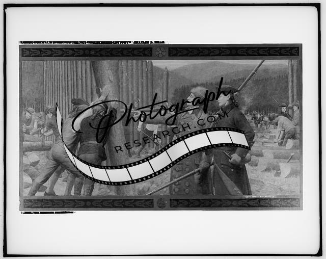 Benjamin Franklin directing building,stockade fort,paintings,Charles Mills,c1900