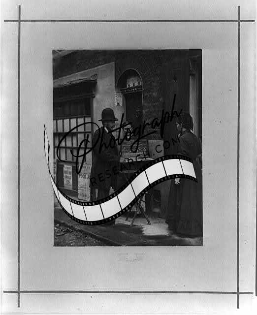 Street doctor,man selling cough lozenges,2 women on sidewalk,outside,1877-1878