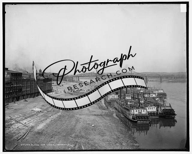 Along levee,stern wheelers,bridges,boats,ships,Cincinnati,Ohio River,OH,c1904