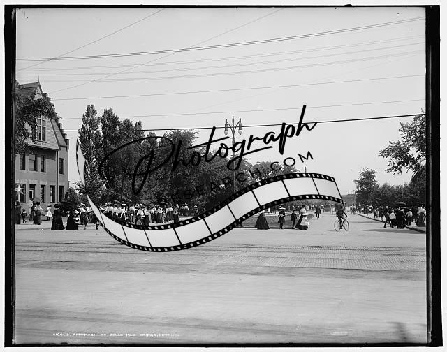 Approach,Belle Isle Bridge,streets,buildings,bicycles,Detroit,Michigan,MI,1900