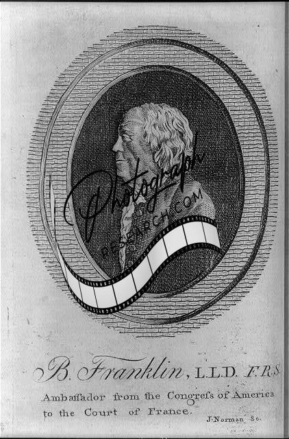 B. Franklin,L.L.D. F.R.S.,ambassador from Congress of America to Court of France