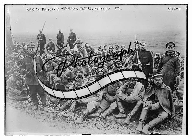 Russian prisoners -- Russians,Tartars,Kirgises etc.,men,soldiers,bayonets