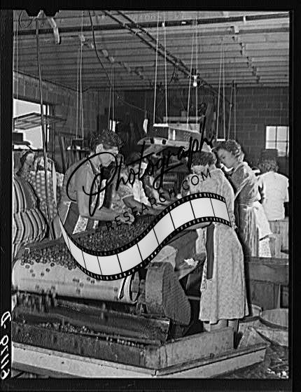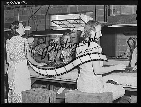 Title: Migrant women at work in cherry packing plant. Berrien County, Michigan