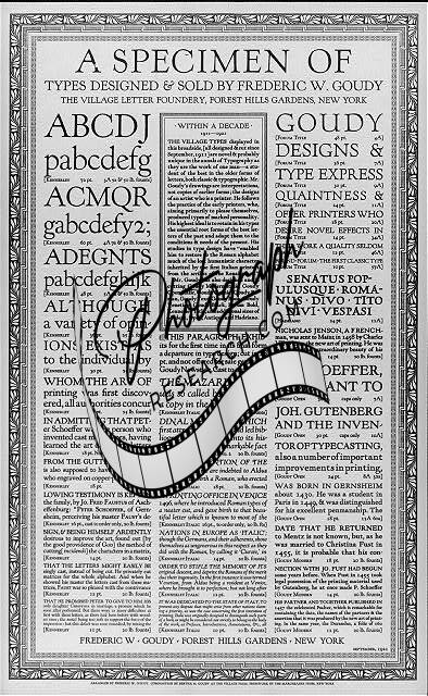 A specimen of types designed & sold by Frederic W. Goudy,1865-1947,type designer