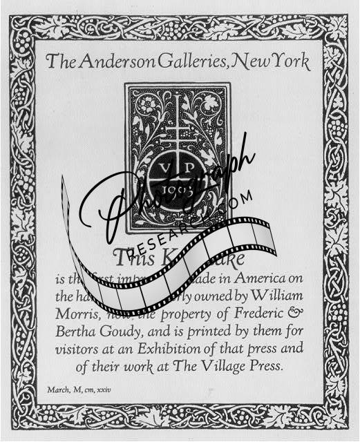 The Anderson Galleries,New York,Keepsake,hand-press,Frederic Goudy,Bertha Goudy