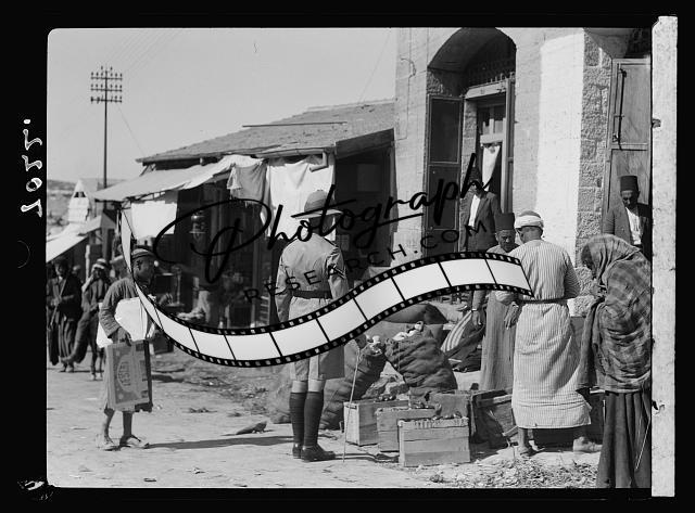 British Police keeping vegetable vendors off the street,Middle East,October 1934