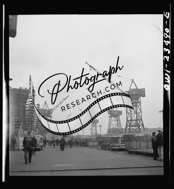 Title: Bethlehem-Fairfield Shipyards, Baltimore, Maryland. May, 1943. Early stages of ship construction