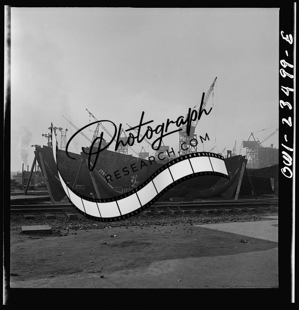 Bethlehem-Fairfield Shipyards, Baltimore, Maryland. May, 1943. Early stages of ship construction