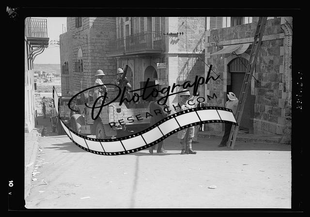Title: Bethlehem police barracks and post office burned by Arab rebels