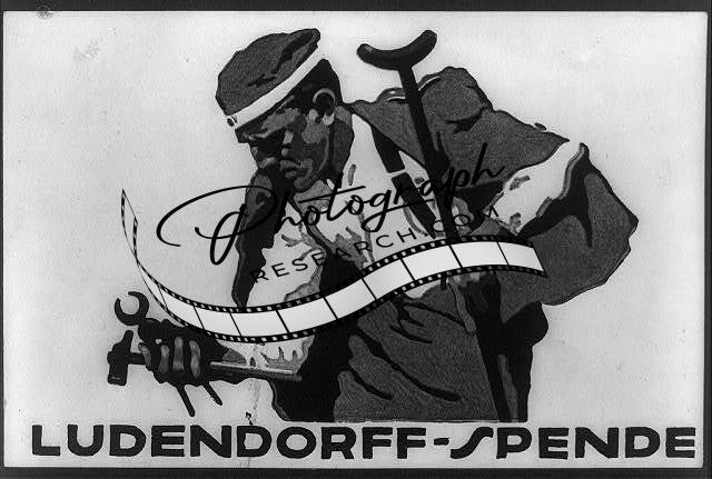 Summary: Print shows a skeleton, draped in the American flag, handing ammunition from a box marked Bethlehem Steel Company to African and Indian soldiers firing at German soldiers. In the lower right corner a vignette showing a grieving German mother holding her child. Surrounding them is a laurel wreath with Iron Cross; below, a cemetery with crosses and German helmets. A poem by H. Vogel accompanies the picture.